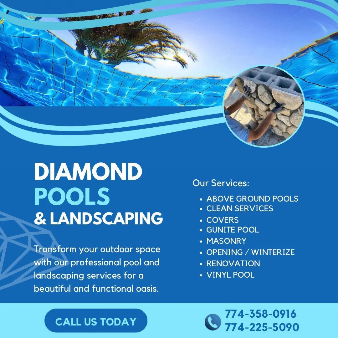 We’re thrilled to announce the opening of Diamond Pools & Landscaping CO. We’re committed to providing customer with the best possible service in your area. We have already opened our schedule for pool renovations, pool construction, openings, and cleaning for the season.